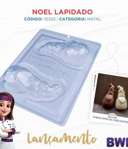 *DESCRIÇÃO: Forma especial com silicone (3 partes), ideal para produção de chocolates com muito mais praticidade e precisão. Possui uma “marquinha” indicando a quantidade necessária de chocolate, levando para geladeira uma única vez. Ela proporciona uma casca uniforme e um acabamento perfeito sempre com o mesmo peso.