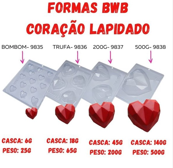 BWB 9836 Forma 3 Partes Coração Lapidado 4 Cav.