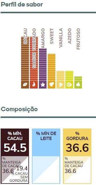 * INGREDIENTES: Massa de cacau, açúcar, cacau em pó, emulsificante: lecitina de soja, aromatizante. NÃO CONTÉM GLÚTEN. Alérgicos: Contém derivados de soja. Pode conter leite.
