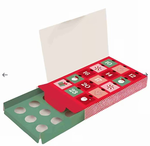 DESCRIÇÃO: A Caixa calendário do advento com berço para doces da linha joyful é apaixonante! Com disposição para 15 doces ela possui destaque para encontrar uma surpresa para cada um deles.