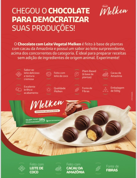 DESCRIÇÃO: Este Chocolate Melken Barra com Leite Vegetal é feito à base de plantas com cacau da amazônia. Pode conter traços de lactose por meio de contaminação cruzada. Nesta embalagem da Harald , contém 500g de chocolate feito de leite vegetal, o qual você pode usar para fazer coberturas, recheios, ovos de páscoa, decorar docinhos, ganaches e banhar suas sobremesas de forma deliciosa e irresistível.