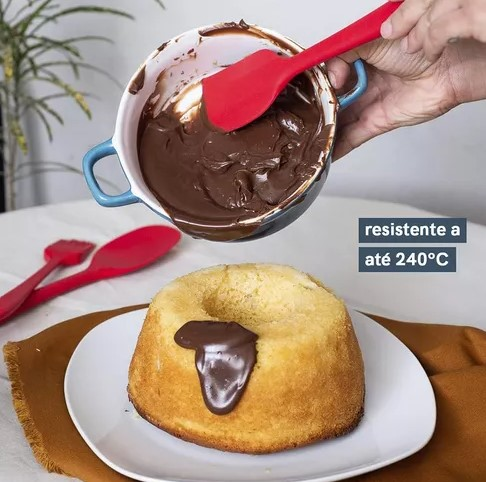 Espátula Culinária Vermelha 27cm Silicone Curva Multiuso Confeitaria Reta Cozinha Em Silicone Multiuso Reforçada: