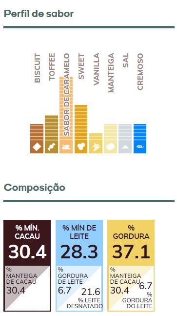 INGREDIENTES: Manteiga de cacau, açúcar, caramelo em pó (leite em pó desnatado, soro de leite em pó, açúcar, gordura anidra de leite, aroma natural de baunilha), leite em pó integral, lactose (leite), açúcar caramelizado, sal, emulsificante: lecitina de soja, aromatizante. NÃO CONTÉM GLÚTEN. Alérgicos: Contém leite e derivados, derivados de soja. Chocolate Callets caramelo Gold da Callebaut é um delicioso chocolate belga caramelo com teor de cacau 30,4% na medida certa para a produção de receitas doces como brigadeiros, ovos de páscoa, bombons, trufas, sobremesas, doces finos e gourmets e muito mais, com o equilíbrio de sabor e uma intensidade única, levando seus preparos a outro nível.