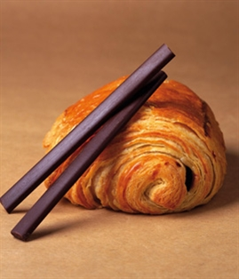 DESCRIÇÃO: Produzidos pela Cacao Barry os palitos de chocolate forneáveis possuem o tamanho perfeito (7,7 x 1,2 x 0,4 cm) para produzir pain au chocolat e croissants. Eles mantém o formato durante o período de forno.