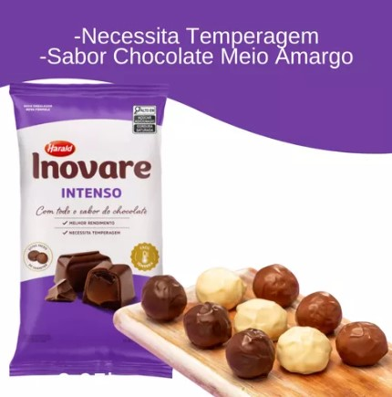 * DESCRIÇÃO: O Inovare em Gotas Intenso é conhecido por sua fácil aplicação e excelente rendimento, sendo um produto indispensável para profissionais e artesãos da chocolateria. Desenvolvido com tecnologia avançada, ele possui resistência superior às variações de temperatura, garantindo um derretimento mais fluido e uma cristalização segura. Isso facilita o preparo de bombons, ovos de Páscoa e doces banhados ou moldados, tornando o processo mais eficiente. Com 300g de Inovare em Gotas Intenso temperado, é possível banhar até 20% mais trufas em comparação com chocolates convencionais. Sua fórmula mais fluida permite a criação de casquinhas finas e brilhantes, resultando em um acabamento perfeito.